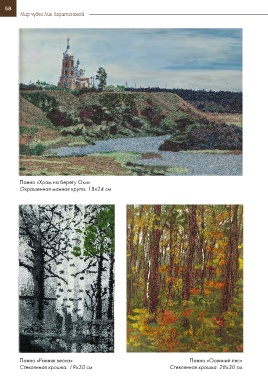58 Мир чудес Лии Харитоновой Панно «Храм на берегу Оки» Окрашенная манная крупа. 18х24 см Панно «Ранняя весна» Панно «Осенний лес» Стеклянная крошка. 19х30 см Стеклянная крошка. 28х30 см